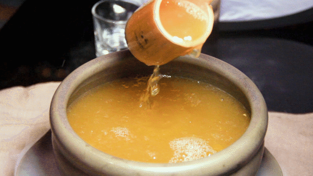 喝时需要用木勺盛之,趣味性满分!轻抿入口,淡淡酒香沁入喉间,回味甘甜,口感层次丰富!