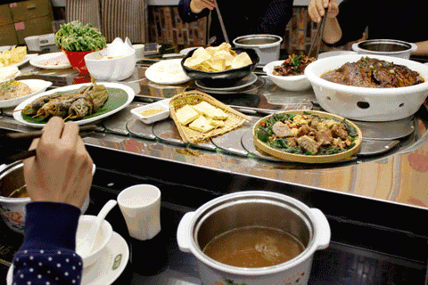 尚上捞旋转式小火锅采用时尚进口的旋转设备!一人一套餐具!一人一个小锅!看着各种各样的菜品从眼前走过!坐在那里无需走动!你想吃什么就拿什么!