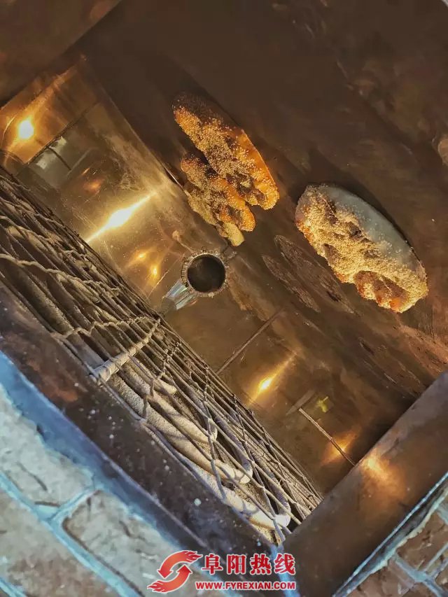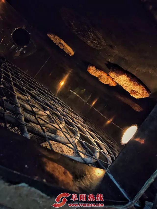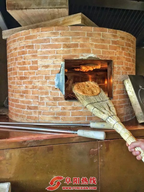 店里的烧饼都是倒着贴在烤炉上烤制而成。