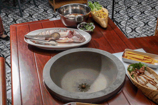 微风吹动着草帽风铃声,扑鼻而来的石锅鱼香气