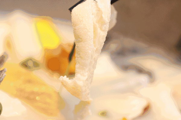 夹起羊肉,放在鱼汤里涮一涮