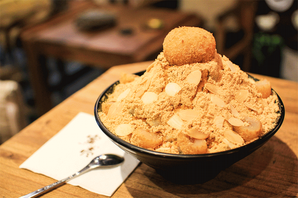 ▲年糕雪冰主要是在年糕加上黄豆粉,包含杏仁、米糕、红豆,厚厚的一层洒在雪花状的牛奶冰上~