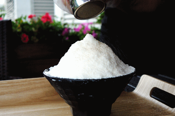 到绵密的雪花冰上