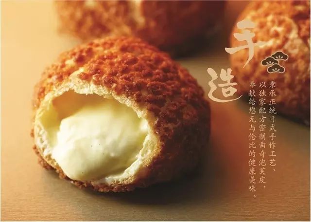 手工、现烤、鲜做的方式,用心烘焙每一个泡芙,把您想要的口味馅料用机器注入每个泡芙中,让您在品尝美味泡芙的同时,获得一种幸福的感觉!