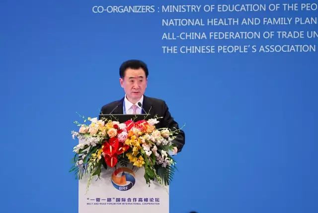5月14日,万达集团董事长王健林参加“一带一路”国际合作高峰论坛,并在“增进民心相通”平行主题会议上发言。