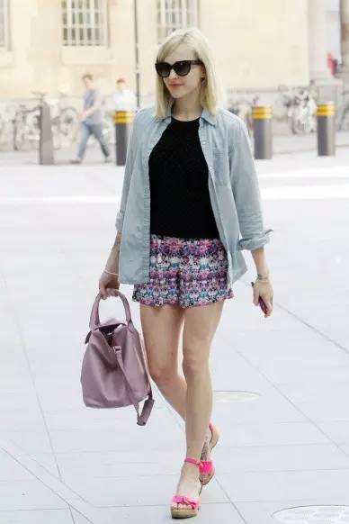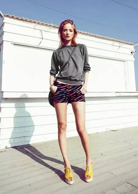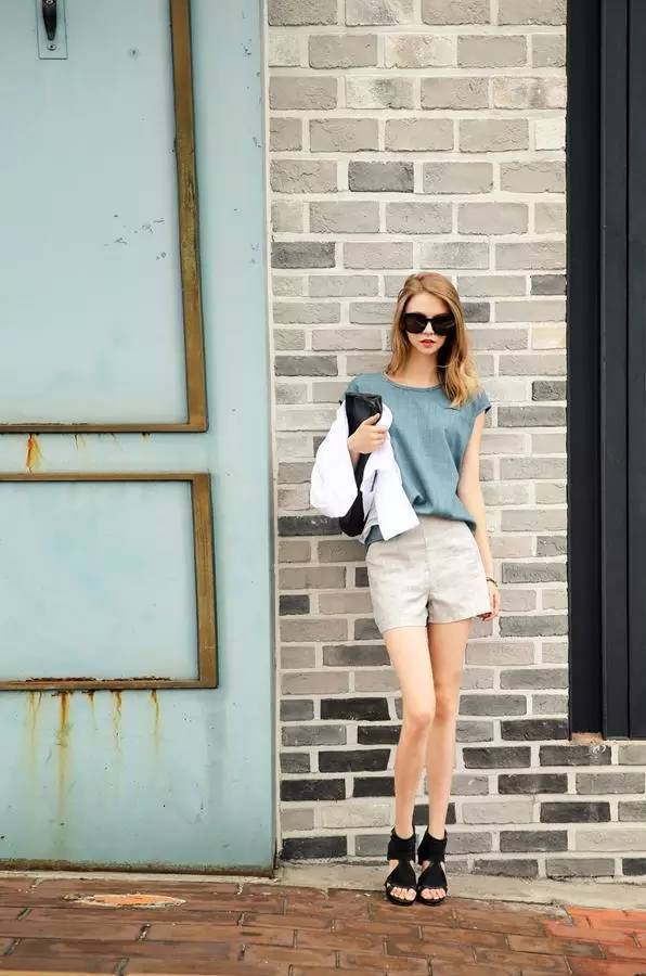 而衣橱必备的白色短裤则要选择稍宽松且不宜过短的款式。