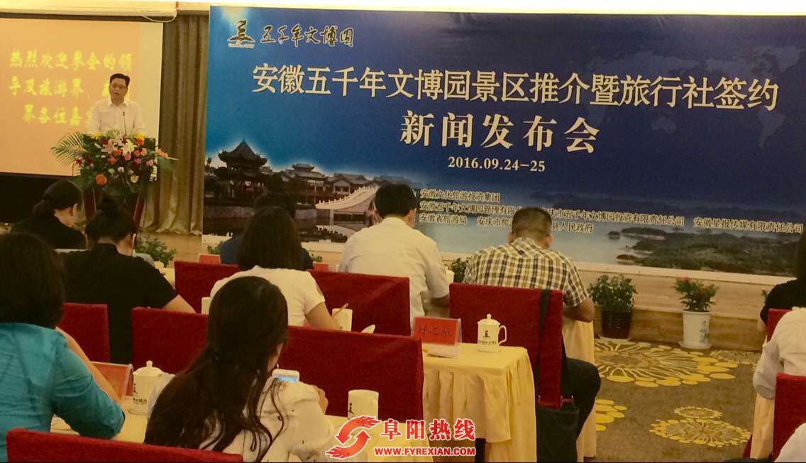 据了解,本次五千年文博园推介会暨旅行社签约新闻发布会由安徽文化旅游投资集团主办,安徽省五千年文博园管理有限公司、安庆五千年文博园投资有限责任公司、星报传媒有限责任公司承办,安徽省旅游局、安庆市旅游局、安庆市太湖县人民政府等旅游主管单位给予了大力支持。会议内容包括五千年文博园主题活动及门票优惠政策推介、合作旅行社现场签约、五千年文博园发展论坛等等。