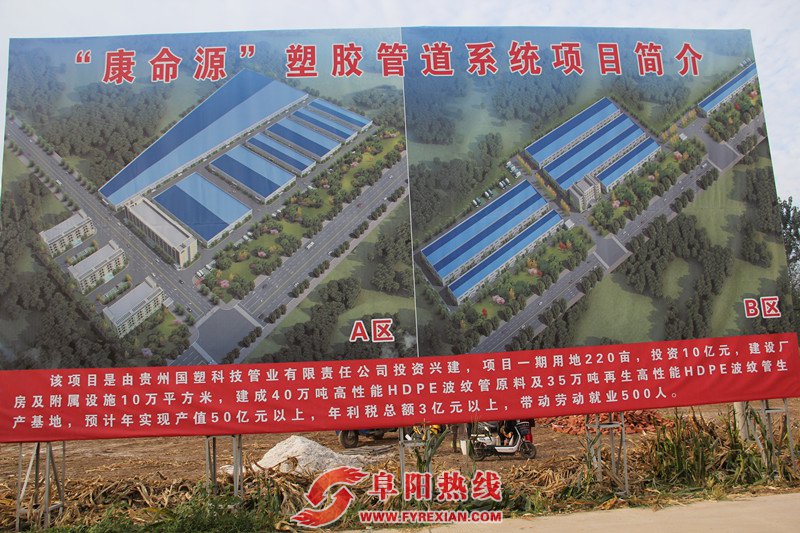8月30日上午,界首市光武工业园区繁星西一路鞭炮齐鸣,红旗招展,有“贵州国塑科技管业有限责任公司“投资的 “康命源”塑胶管道系统项目开工;项目一期占地220亩,投资10亿元,建设厂房及附属实施10万平方米,建成40万吨高性能HDPE波纹管原料及35万吨再生高性能HDPE波纹管生产基地;预计年实现产值50亿元以上,年利税3亿元以上,带动就业500人。光武镇党委书记范富强,光武园区管委会负责人宋良策、光武塑料行业协会会长轩勇出席开工仪式。