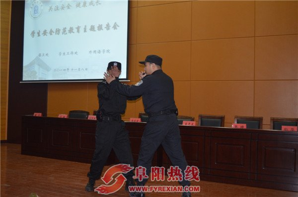 据悉,此次学生安全防范主题教育报告会由阜阳师范学院外国语学院阜阳师范学院学生工作处和保卫处携手举办,旨在提高在校学生,尤其是女学生的安全防范意识,此次民警将安全知识送进大学校园受到大学生的欢迎。“希望这样的活动可以经常举行,能让学弟学妹多一点安全防范意识。”阜阳师范学院学生会的名学生干部表示。