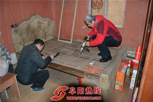 2月25日上午,阜阳市爱心公益志愿者协会志愿者20人多走进全国总工会先进个人、全国劳模、安徽省劳动模范、阜阳市"十大公益之星"、阜阳市第一届道德模范、被中央文明办评为"助人为乐好人"、80多岁的孙玉安老人家里,为老人整理床铺、焊接防盗窗、打扫房间等。